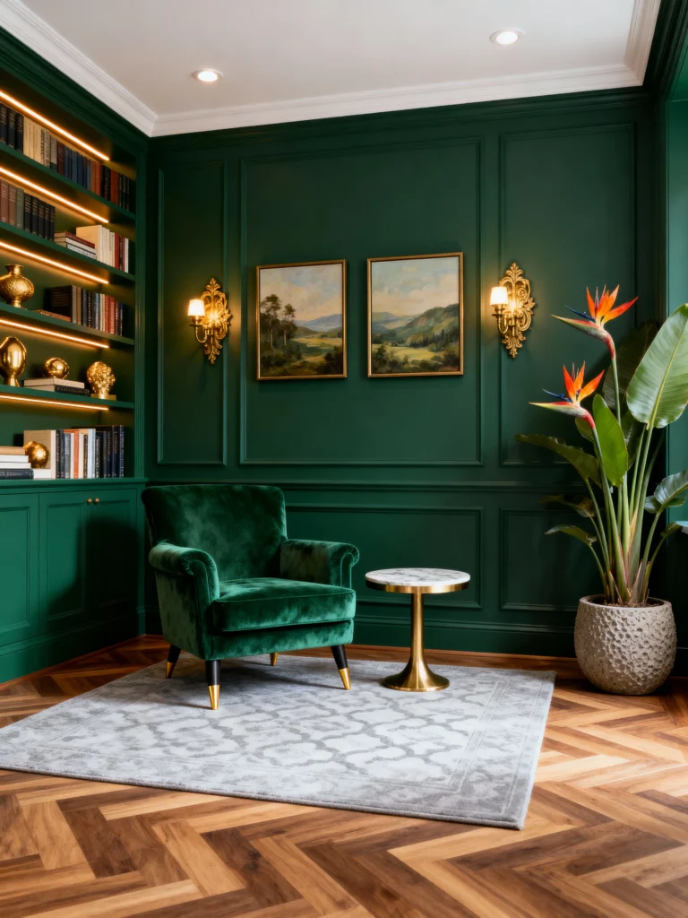 Want luxury without the effort? Emerald green is your BFF. This jewel-toned stunner adds richness and makes a statement without yelling. Pair it with velvet cushions or a big leafy plant for maximum “ooh” factor.