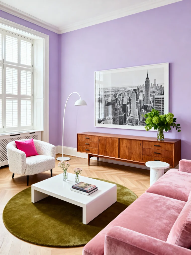 Soft, soothing, and a little dreamy—lavender turns your living room into a zen zone. It’s not just for bedrooms; it’s a chill pill for any space.