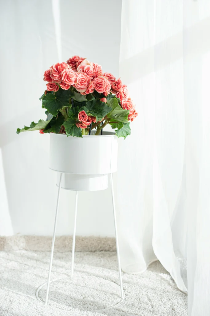 if you want your vibrant blooms to be the star of the show, a minimalist white metal stand is the way to go. The delicate legs and crisp white finish provide a clean, modern base. It’s a beautiful example of how simple, intentional design can make a singular plant feel like a striking centerpiece.