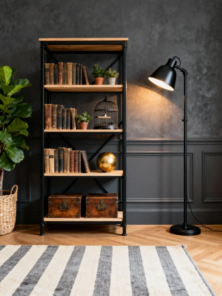Got a thing for raw style? Paint your walls grey and pair them with black metal accents—think a black steel bookshelf or a matte black lamp. It’s rugged, it’s cool, and it’s got that warehouse-loft energy. I’d live here in a heartbeat—feels like a hip coffee shop minus the overpriced oat milk lattes. Add a worn rug, and you’re golden.