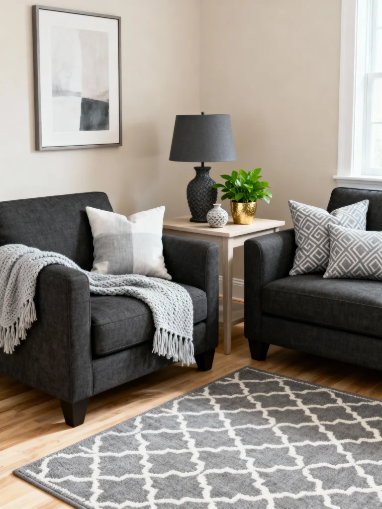 No cash for a total overhaul? No biggie. Hit up secondhand stores for black frames or grey rugs. DIY a gallery wall with cheap prints—YouTube’s got your back. Paint’s your bestie—a $10 can of grey transforms anything. I snagged a black chair for $25 once—total steal. Style doesn’t have to mean broke. FYI, your bank account’s safe with me.