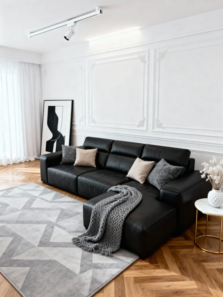 Picture this: a black sectional sofa, grey throw pillows, and a matching grey rug. Simple, clean, and oh-so-smooth. Toss in a black coffee table, and you’ve got a setup that’s minimalist but packs a punch. I tried this once—suddenly my living room felt like it belonged in a fancy magazine. It’s low effort, high reward. What’s stopping you from stealing this look?