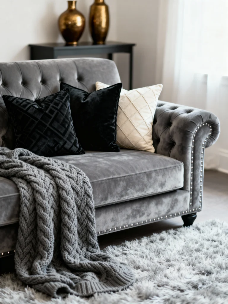 Love texture? Layer it up! Think a grey velvet sofa with black leather cushions. Add a chunky grey knit throw for that cozy factor. The mix of fabrics keeps it interesting without needing a million colors. I’m obsessed with this vibe—my hands can’t stop petting the furniture. It’s like a hug from your living room, but way less awkward.