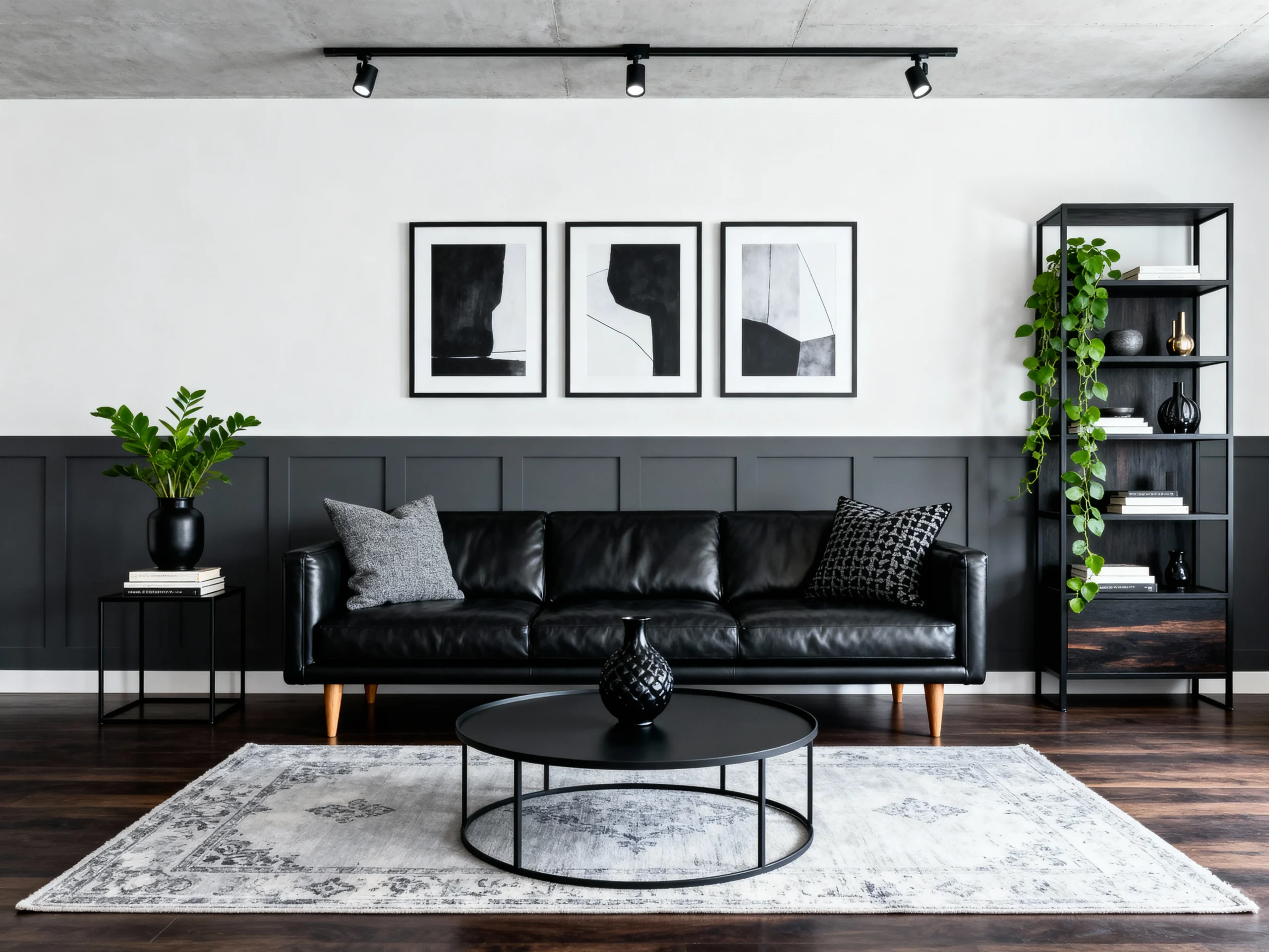 Art lovers, this one’s yours. Hang a black-framed gallery wall—mix photos, prints, whatever—against a light grey backdrop. Add a black sofa to anchor it all. It’s artsy, it’s personal, and it’s a total flex. I tried this with some thrift store frames—suddenly my living room felt like a museum. (Okay, a very budget museum, but still.) You’ve got to see this in action.
