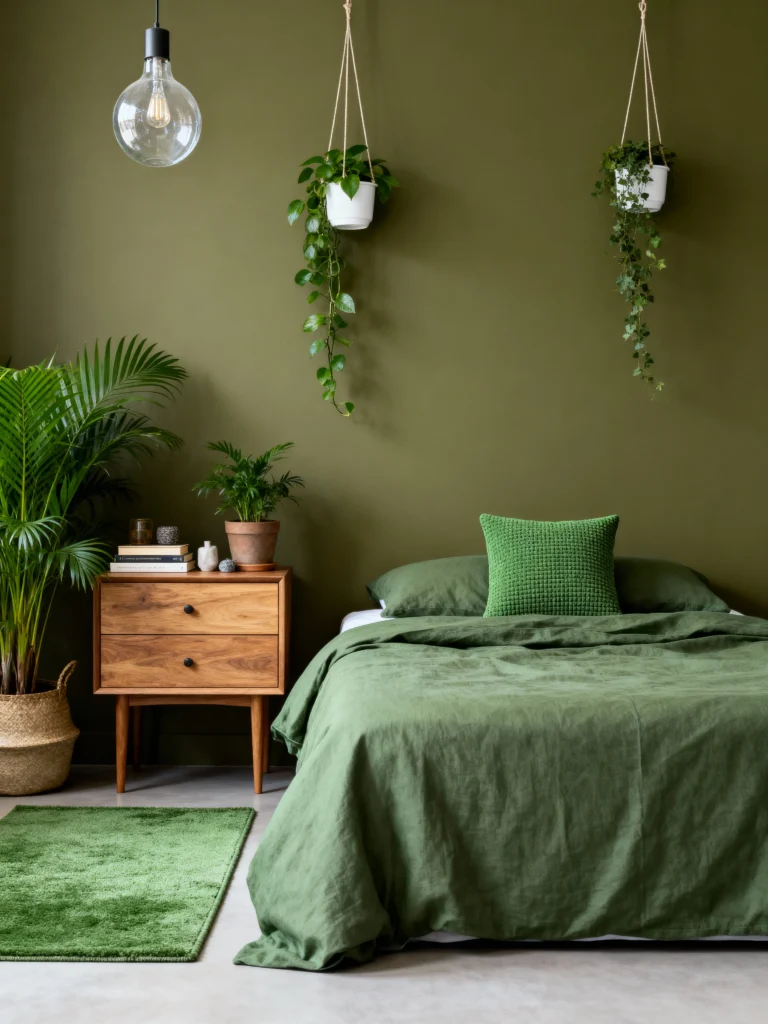 - Why it works: The dark greens mimic a forest canopy, blocking out chaos and inviting rest.