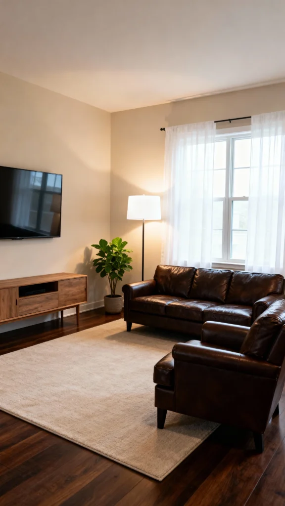 Choosing accent furniture in muted hues can really tie a cozy living room together. Think soft beige chairs or warm brown tables that complement your main pieces without overwhelming the space. These earthy tones add warmth while keeping the vibe relaxed and inviting.