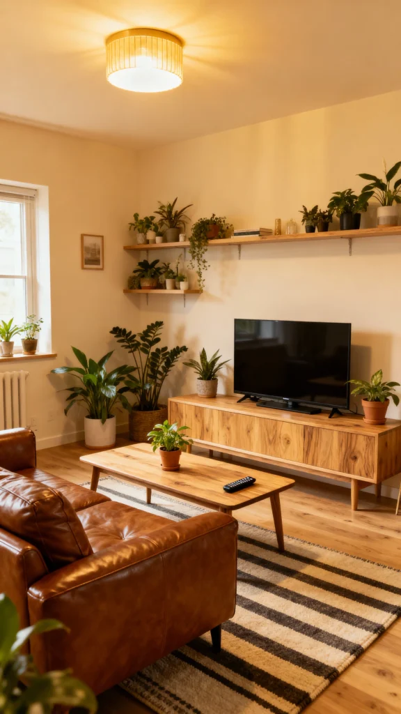 Add some greenery to your living room with indoor plants. They not only bring a splash of color but also help purify the air, making your space feel fresh and vibrant. Choose earthy pots to complement those cozy brown tones, and watch your room come alive!