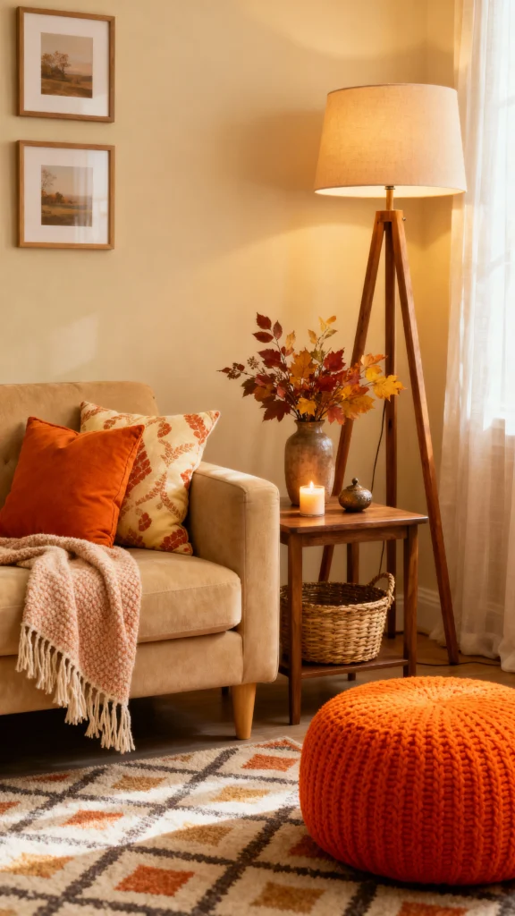 Cozy up your living room with warm-toned textiles that add a touch of comfort. Soft throw blankets and textured pillows in earthy browns and rich oranges create an inviting space. These simple pieces can transform your room into a snug retreat, perfect for relaxation.