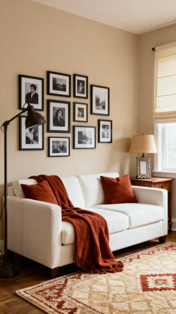 Adding personal touches to your living room can really make it feel like home. Warm colors like soft yellows and earthy tones in your decor help create a cozy atmosphere. Don’t forget to showcase your favorite photos and little treasures to give your space a unique personality!
