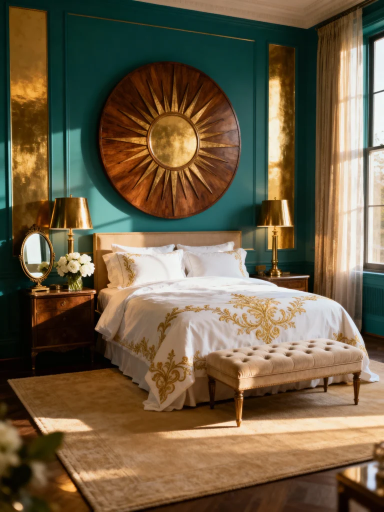 Art Deco style brings a touch of elegance to any bedroom. Bold colors, geometric patterns, and luxurious materials create a cozy yet chic atmosphere. Consider adding a statement piece like a vibrant mural or unique lighting to truly capture this glamorous vibe.