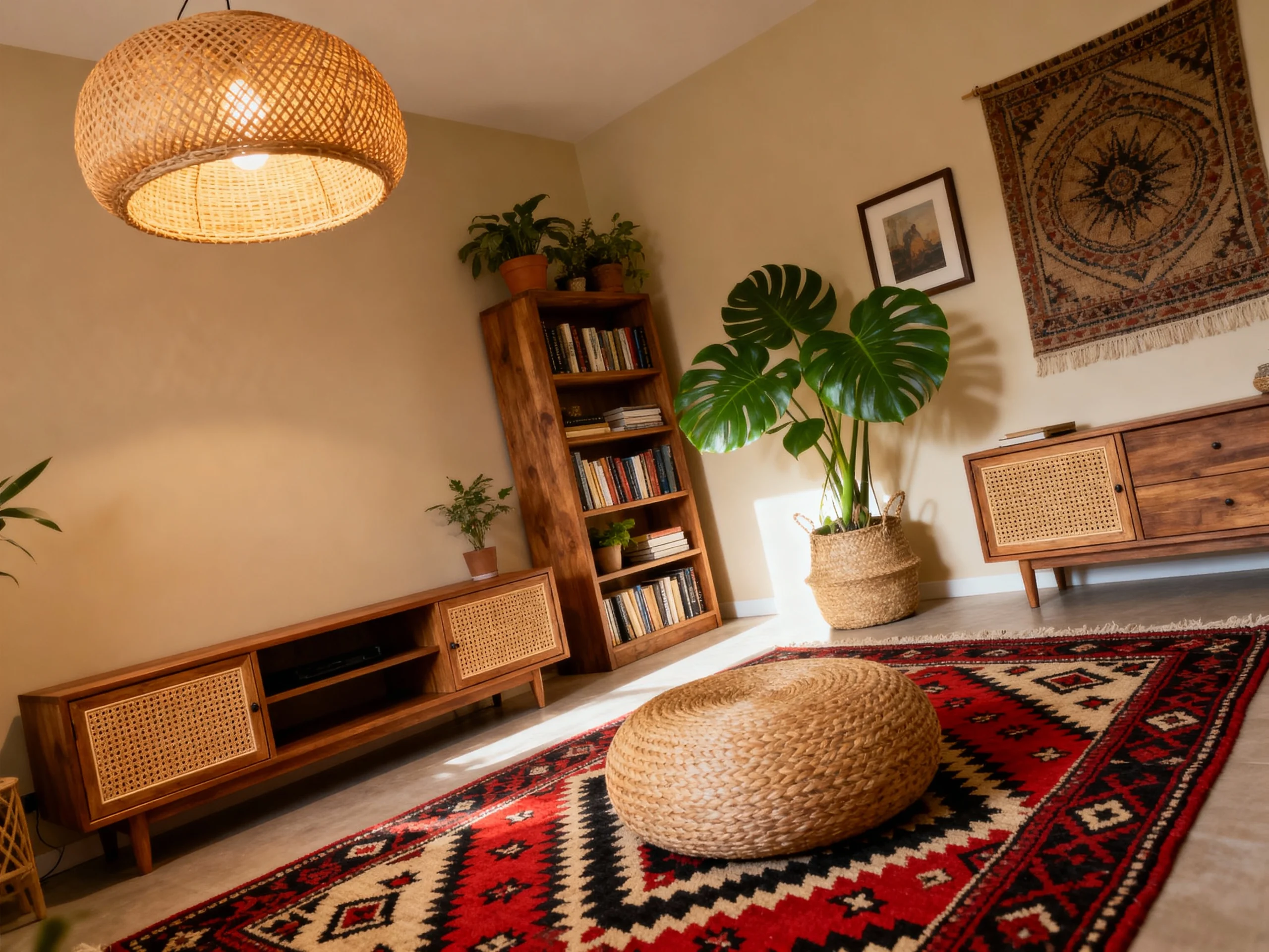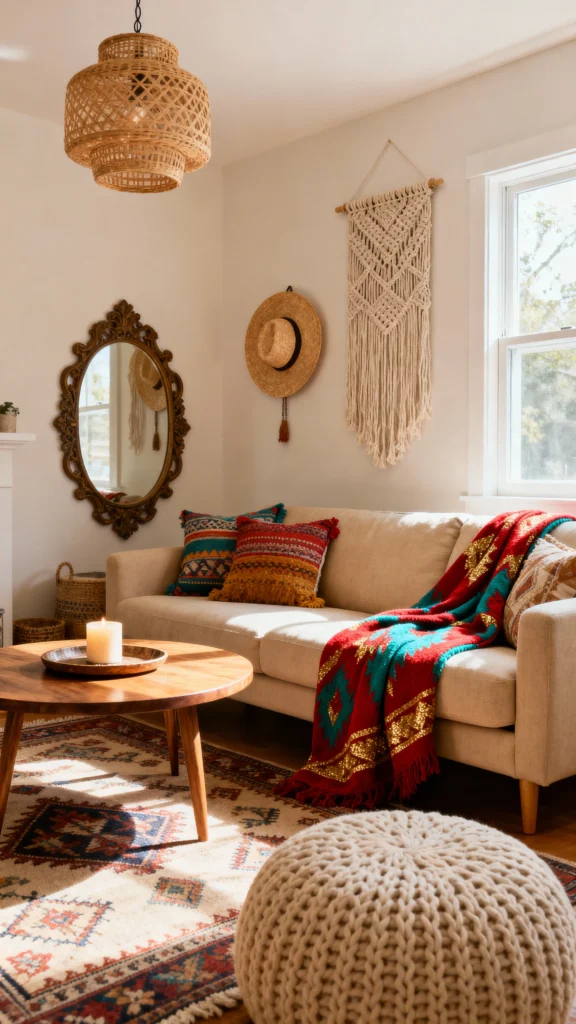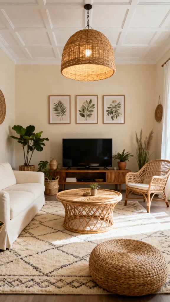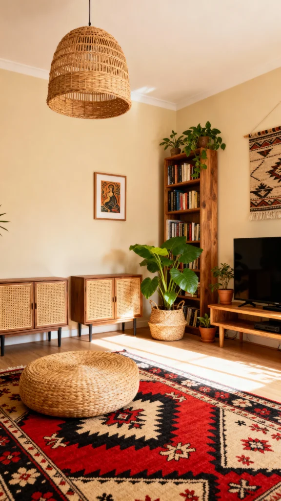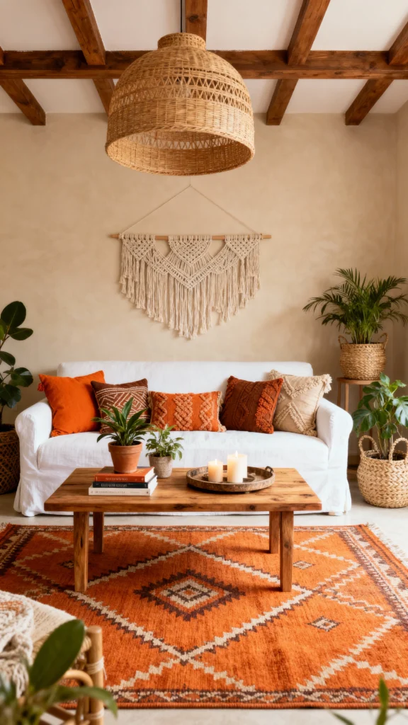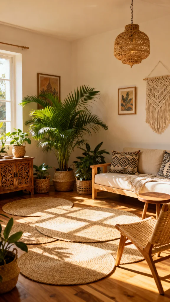 Natural fiber rugs are a simple way to add warmth and texture to your boho living room. They bring an earthy vibe that makes the space feel cozy and inviting. Plus, these rugs are versatile and can blend beautifully with various decor styles.