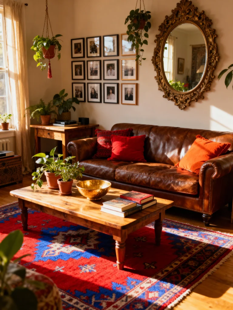 Wall art is a fun way to show off your personality in a modern boho living room. Mix and match different frames and styles to create a unique gallery wall that tells your story. Don’t be afraid to incorporate personal photos, vintage finds, and interesting prints for a cozy vibe.