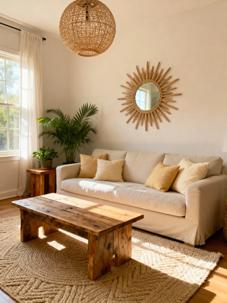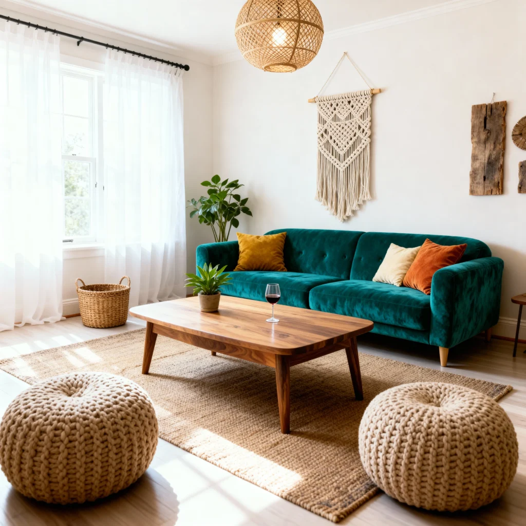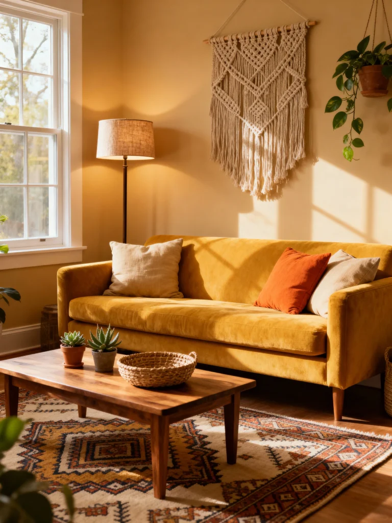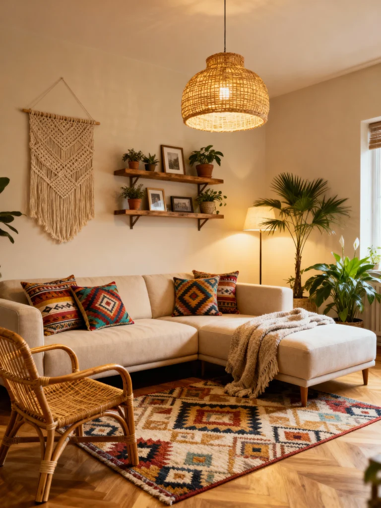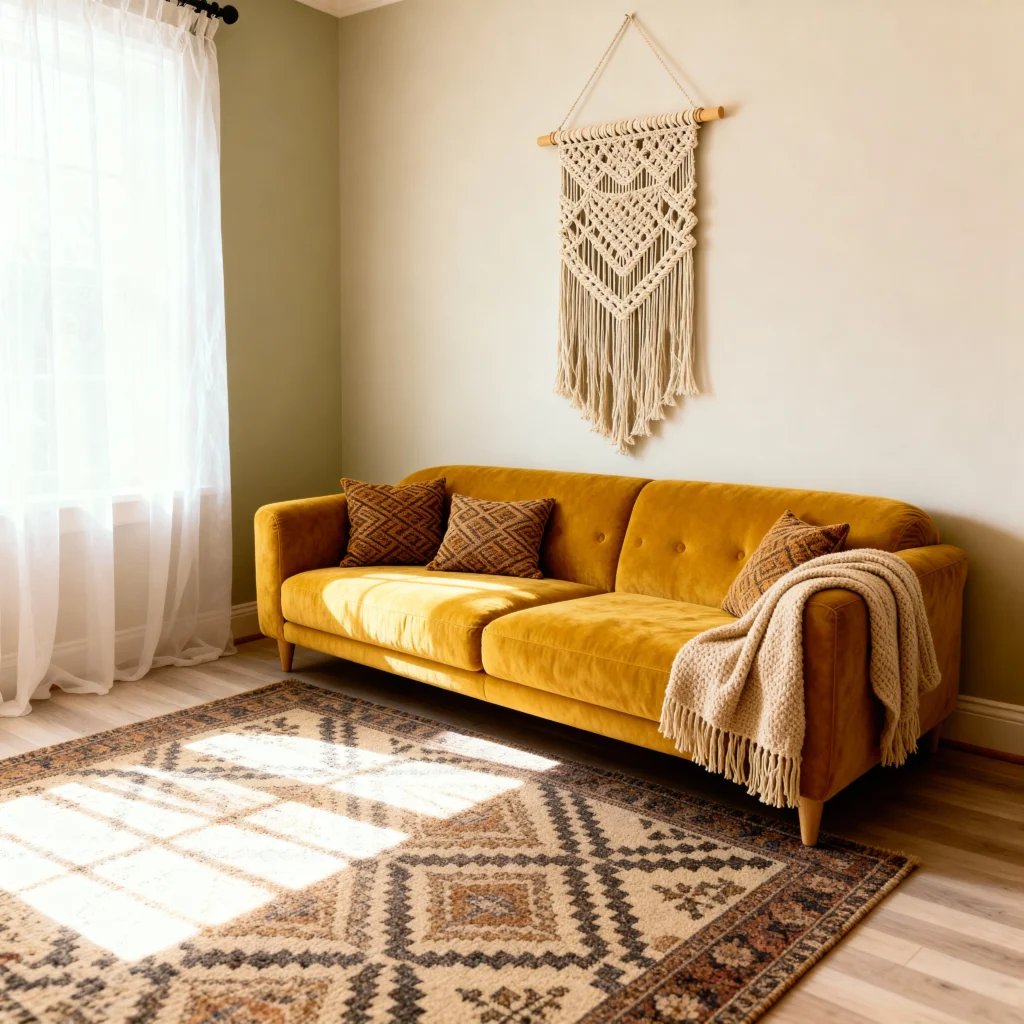 Textured rugs can really change the vibe of your living room. They add a cozy touch and help define different areas, making your space feel more inviting. Plus, with so many styles out there, it’s easy to find one that matches your boho aesthetic perfectly.
