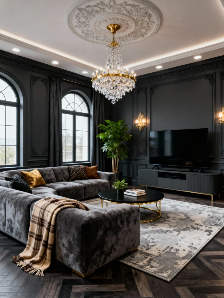 - Modern twist: Balance the darkness with plenty of white accents, metallic details, and good lighting.