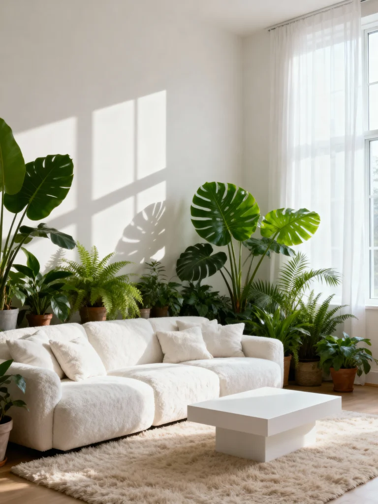 Adding plants to your retreat can really enhance the serene atmosphere. The soft whites of your furniture and decor blend beautifully with the vibrant greens of the foliage. It creates a calming space where you can feel relaxed and rejuvenated.