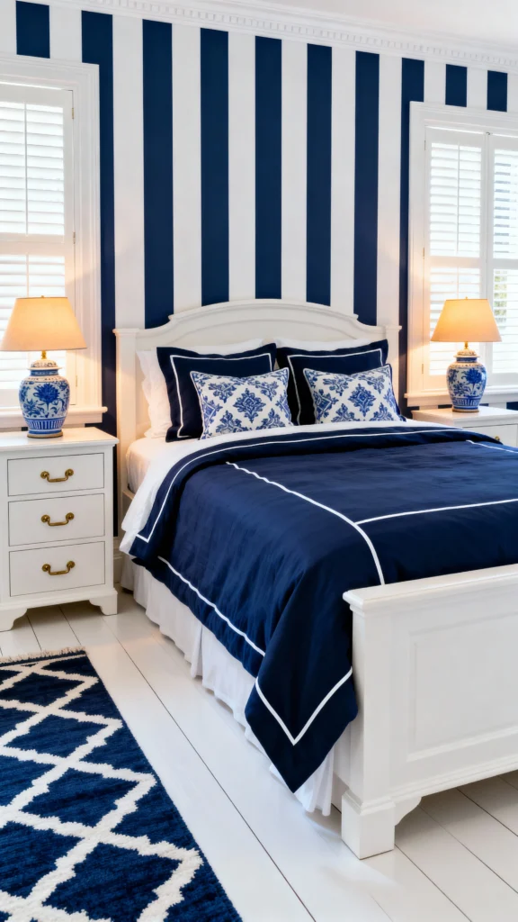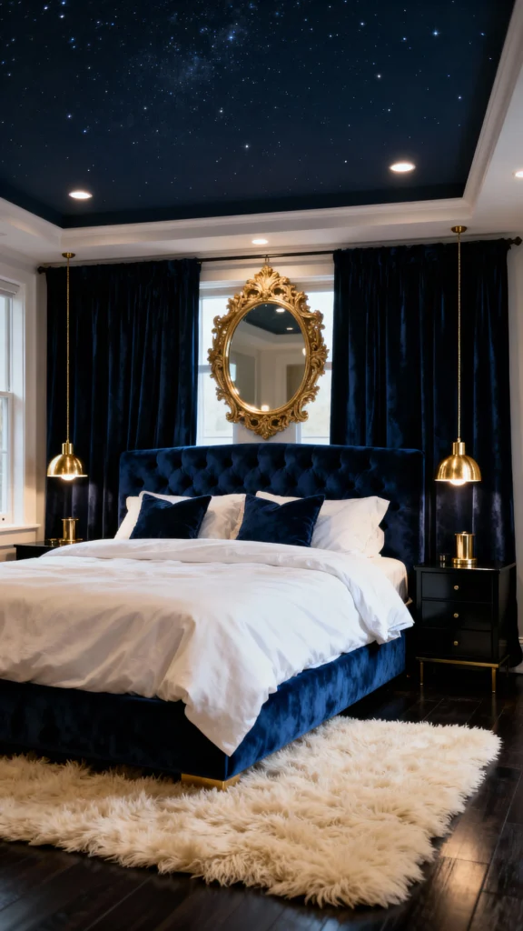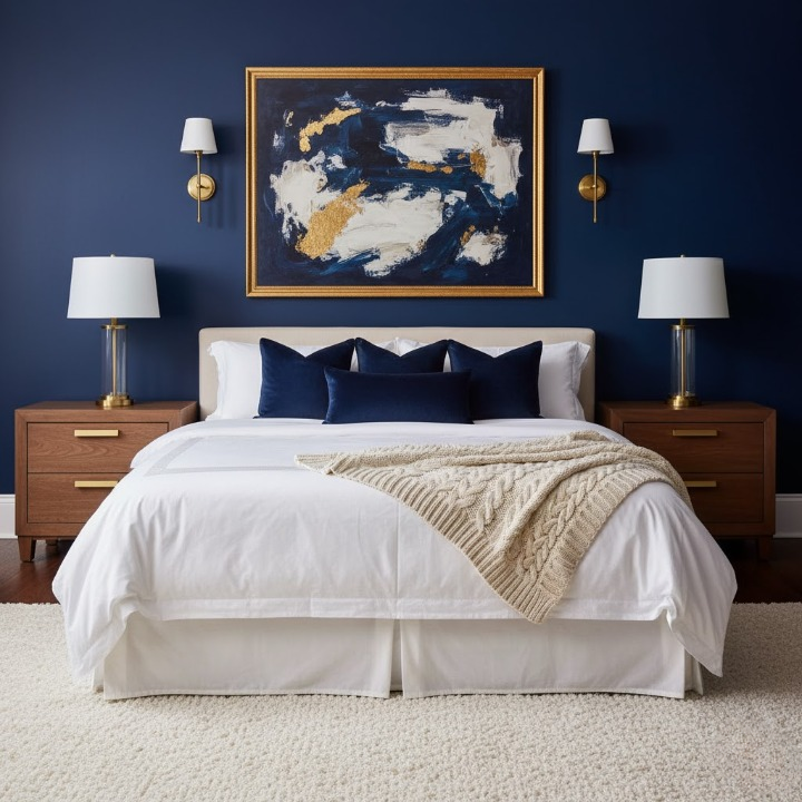This isn’t your grandma’s bedroom (unless your grandma has incredible taste). Navy creates drama without being dark and moody. It’s sophisticated, timeless, and pairs beautifully with brass or gold accents.