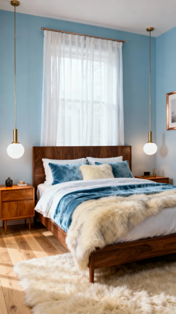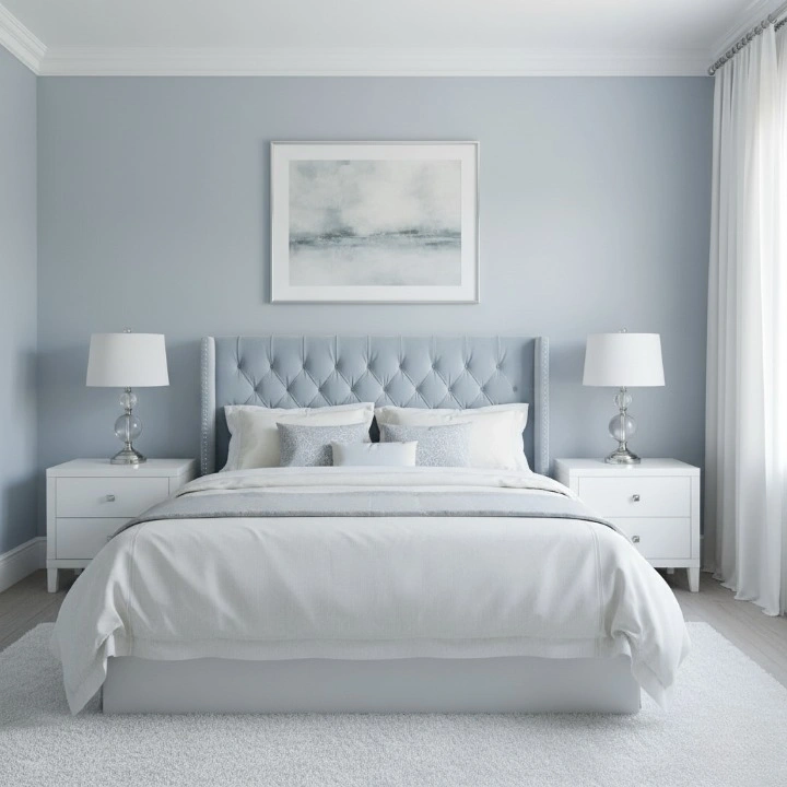 Ice blue is perfect for modern, minimalist spaces. It’s cool-toned (literally), but when paired with the right elements, it creates a stunning, hotel-worthy bedroom.