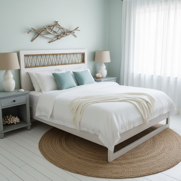 Soft aqua and seafoam tones bring that breezy coastal vibe indoors. This style is all about relaxation—no stress allowed in this space.