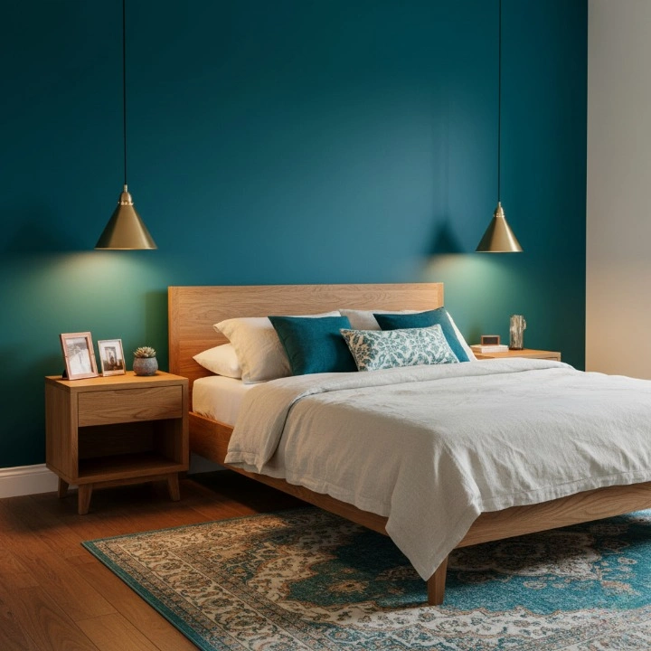 Teal strikes the perfect balance between blue and green, bringing depth and richness to your space. It’s bold enough to make a statement but still calm enough for a bedroom.
