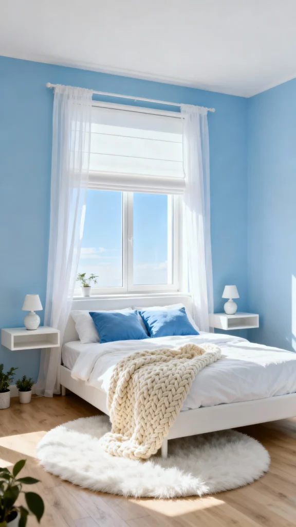 Soft sky blue walls create an instantly peaceful atmosphere. It’s like bringing the outdoors in, but without the bugs. 😊