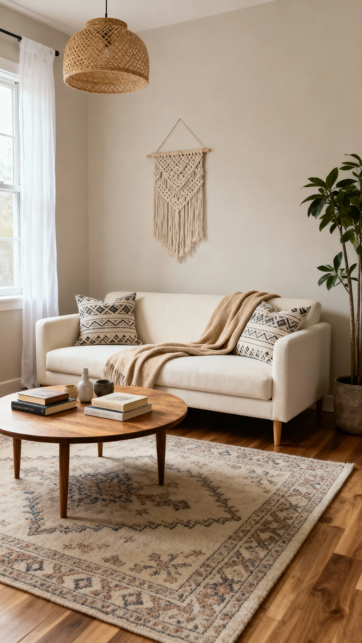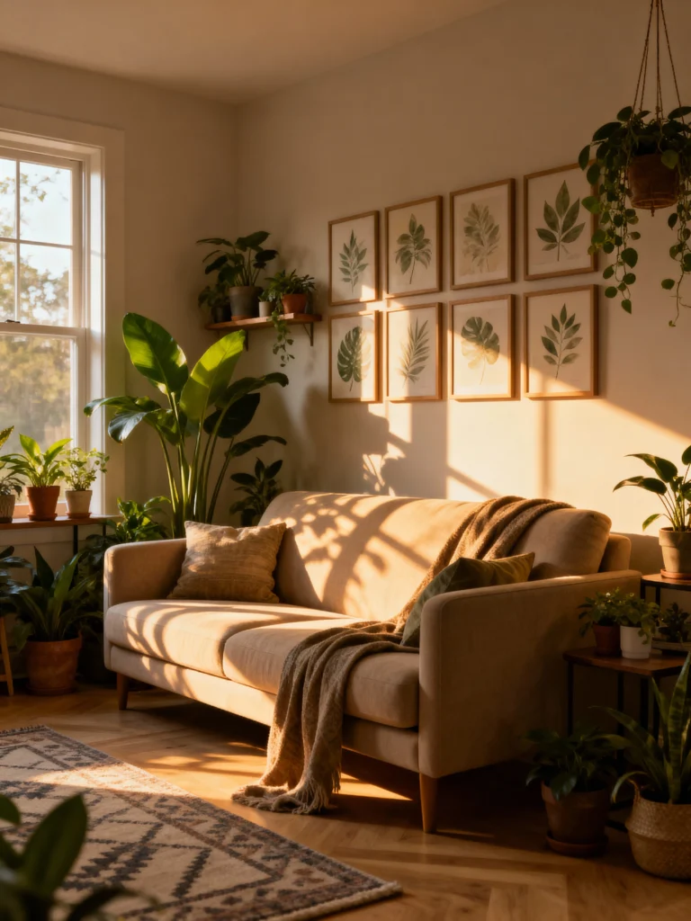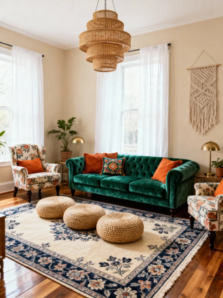 Artisan textiles and throws add a warm touch to any living room. Soft, cozy materials with unique patterns create a relaxed vibe that’s just inviting. Don’t hesitate to layer different textures for a boho look that feels both laid-back and stylish!