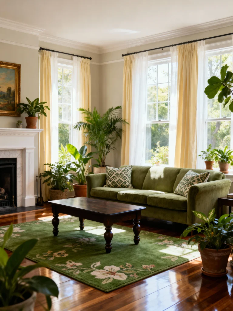 Green’s your nature fix—pair it with cream, and it’s pure serenity. Light green walls or a green sofa, softened by creamy tones, create a fresh, alive feel. Ideal for a botanical theme—toss in some plants for extra zen. FYI, green’s a stress-buster, so this could be your chill spot. I once painted a room green thinking “forest retreat”—nailed it. It’s subtle yet lively, perfect for unwinding.