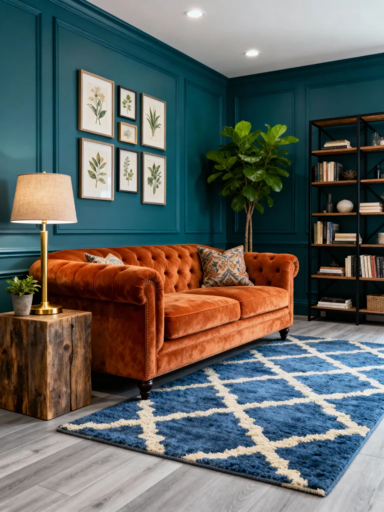 Feeling bold? Teal and coral are your wild card. Teal’s cool and calm; coral’s warm and punchy. Together? Electric. Use teal for walls or a big piece, then splash coral in accents. Bohemian or coastal—it works. This combo’s so fun, it’s like a party in your living room. I’d bet it’d make game night epic. Tired of boring? This is your fix.