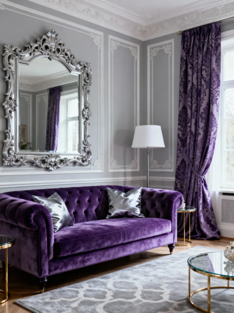 Purple’s royalty, and silver’s the crown. Deep purple on an accent wall or sofa, with silver in lamps or decor, screams luxe. Pick a rich shade—too bright feels juvenile, too dark overwhelms. This combo’s glam without being gaudy. I once dreamed of a purple room—reality was less regal, more grape. Balance it out, and it’s a stunner for upscale vibes.