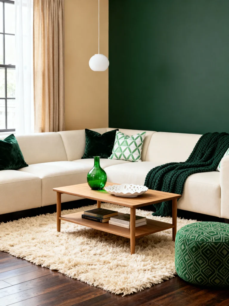 - Feature Wall: Paint one main wall a deep, saturated green, like a hunter or forest shade.