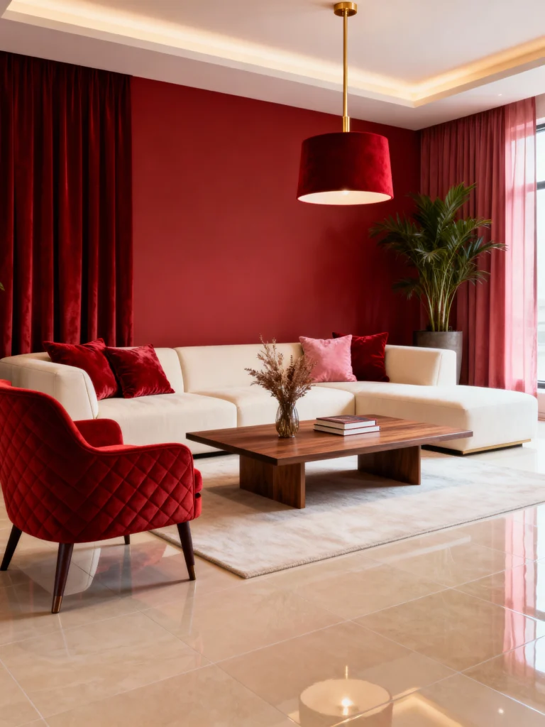 - Warm Tones: Pair with furniture that has gold or warm wood accents to enhance the richness of the red.