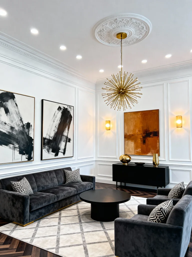 Why it works: Charcoal’s drama meets white’s purity—timeless contrast.