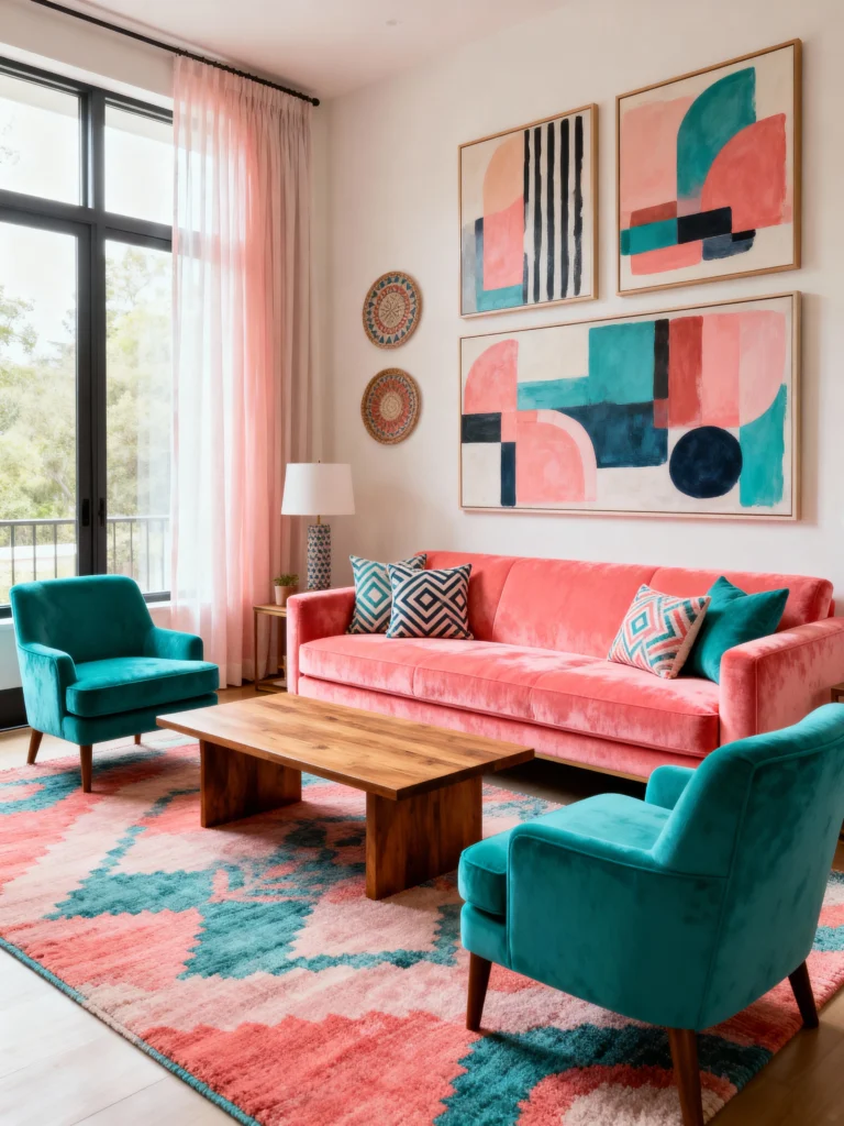 Alright, let’s crank it up! Coral and teal together? It’s like bringing the beach to your sitting room. Think coral walls or pillows against a teal sofa—vibrant, fun, and totally Instagram-worthy. This combo’s for the bold souls who aren’t afraid to make a statement. Ready to feel like you’re on vacay 24/7?