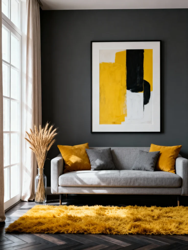 Gray might sound meh, but add yellow, and bam—it’s a party! Imagine gray walls with a sunny yellow rug or pillows. It’s modern, it’s cheerful, and it doesn’t take itself too seriously. Perfect for a sitting room where you want to kick back but still look cool doing it.