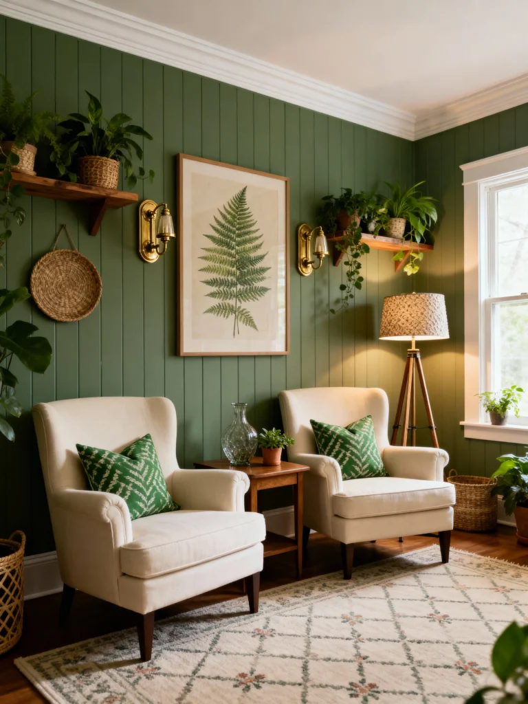 Ever wanted your sitting room to feel like a forest retreat? Sage green walls with cream furniture do just that. It’s soft, it’s soothing, and it’s basically a hug from Mother Nature. Add some plants, and you’re living the dream. This combo’s perfect if you’re into that whole “calm and collected” aesthetic.