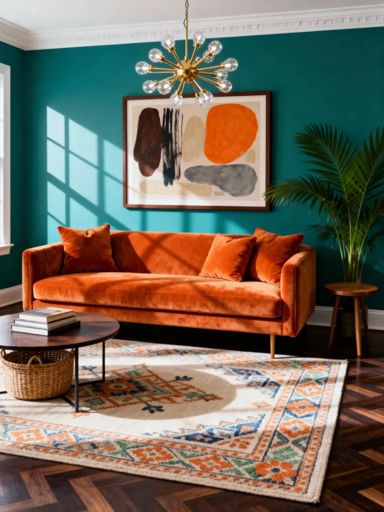 Feeling brave? Turquoise and orange are your wild card. Think turquoise walls with an orange chair or pillows—it’s loud, it’s proud, and it’s not for the faint-hearted. This combo’s like a jolt of espresso for your sitting room. You in?
