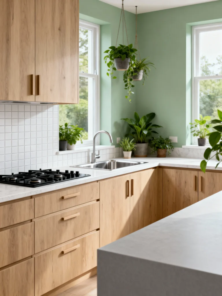 Muted sage green brings a calming vibe to any space. This color pairs beautifully with natural wood tones and houseplants, creating a cozy atmosphere. It’s an easy way to invite the outdoors in and promote a relaxed feel in your home.