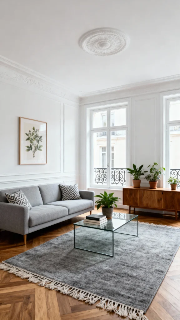 Whites, light grays, and wood tones—clean and functional. Add a plant for life. It’s serene and perfect for small spaces. IMO, nothing beats this for clutter-free calm. Keep furniture minimal and sleek.