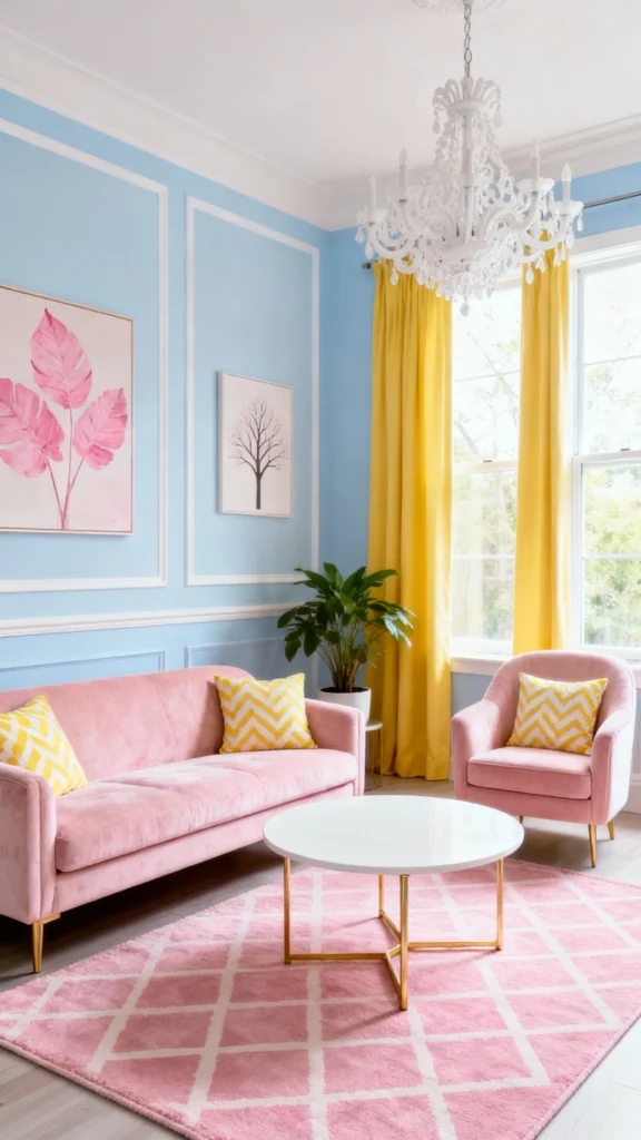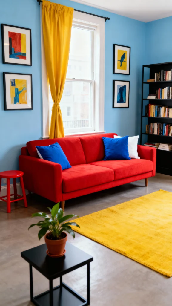 Not for the shy! Think red, yellow, blue—colors that scream “look at me!” Paint an accent wall red or grab a yellow sofa. It’s eclectic and playful—perfect if you’re the neon-socks type. I’d start small with this one; too much bold can feel like a circus.