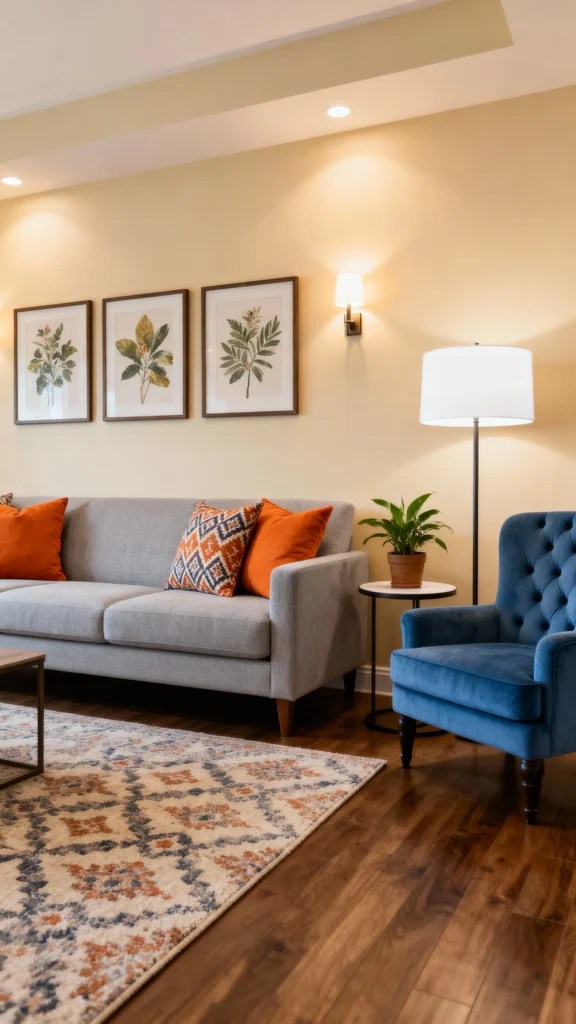 Stick to two or three colors max. Too many? Your room’s a rainbow mess. Lighting’s key too—test colors in your space first. That “perfect” green might look like sludge under your lamps.