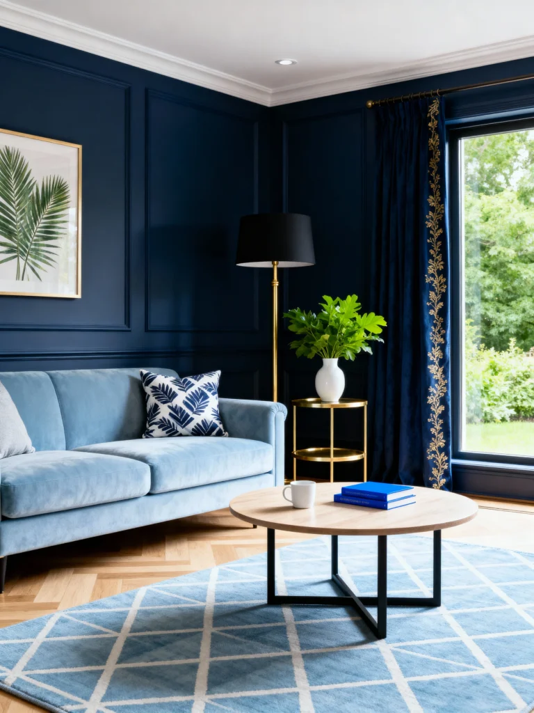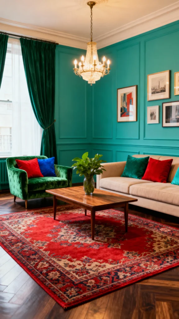 Want to feel like royalty? Deep emerald, sapphire, and ruby say luxury loud and clear. Think velvet sofas or rich curtains. Glamorous and bold—don’t go halfway, or it’s just “meh.” My dream living room, honestly.