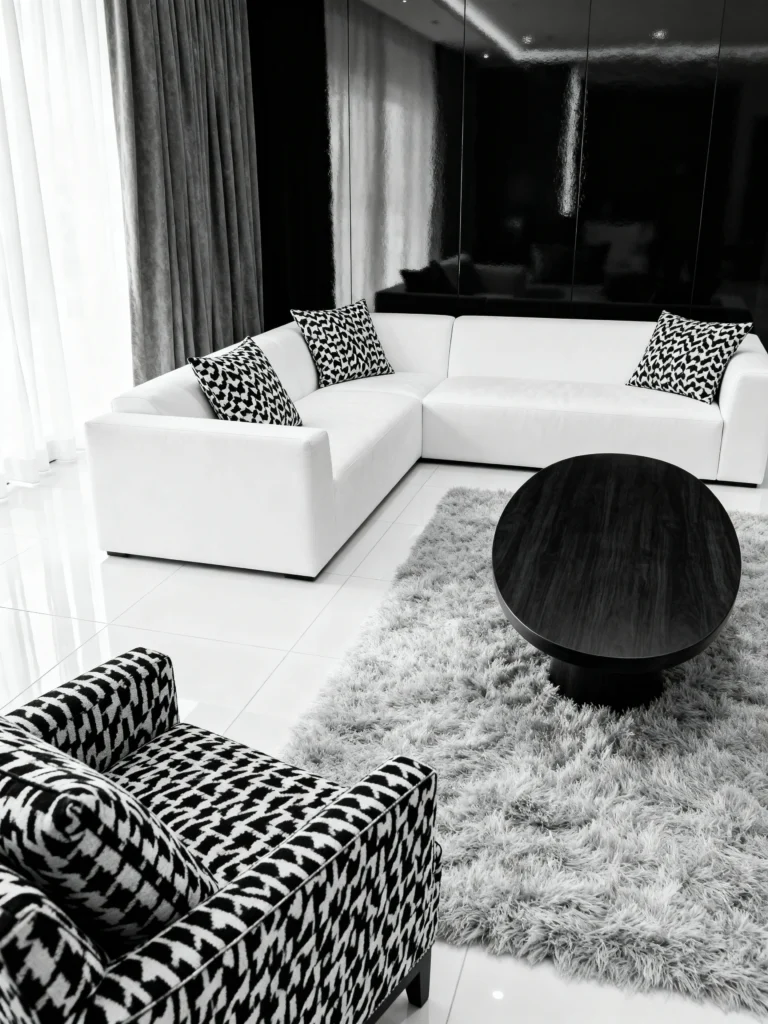 - Layer textures: Mix chunky knits, soft rugs, and different patterns in black and white to add visual interest.