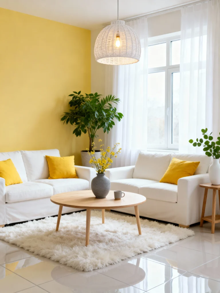 - Choose a subtle hue: Go for a buttercup or pale yellow that’s more about warmth than saturation.