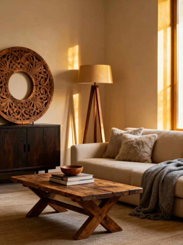 Natural wood accents can effortlessly transform your living room into a warm and cozy retreat. The rich texture and warmth of wood—whether in furniture, shelves, or decorative pieces—bring a sense of nature indoors, making the space feel grounded and inviting. When paired with soft textiles like plush throws or linen cushions and a palette of earthy tones, the result is a harmonious and relaxed atmosphere. These simple yet impactful touches create a space that’s perfect for unwinding, entertaining, or simply enjoying a quiet moment at home. Embracing natural elements adds timeless charm to your minimalist design.