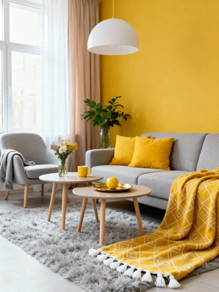- Gray & Yellow: Use a cool neutral like light gray as the main furniture color—it’s the perfect balance for a vibrant yellow.