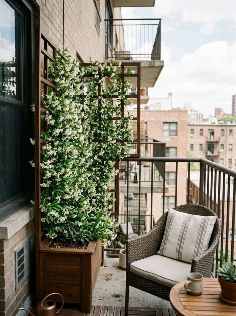 If your patio is small and close to your neighbors, skip the bulky room dividers. Get a tall, narrow planter box with a built-in trellis to grow climbing vines like jasmine. It acts as a living, breathing piece of furniture that defines your space and smells amazing.