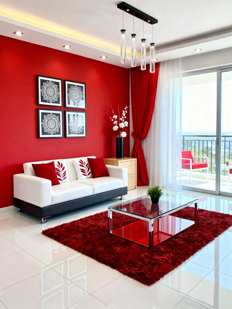 - Balance with white: Use crisp white furniture and trim to make the red truly pop.