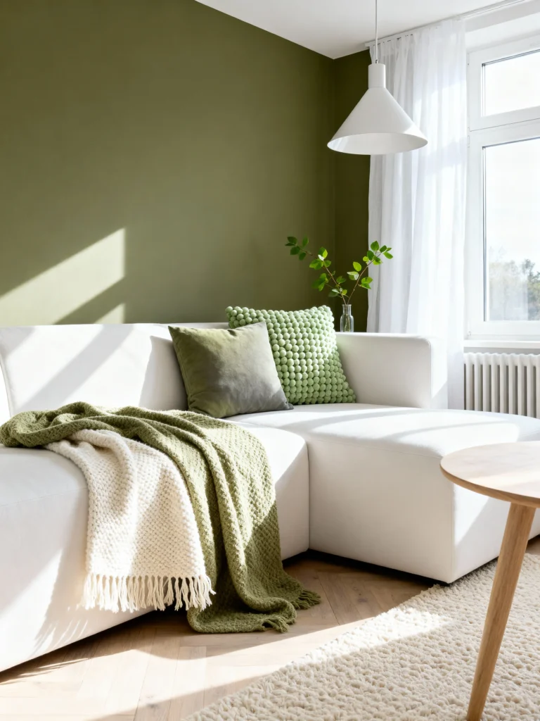 - Layer the tones: Mix and match pillows and throws in various green and tan shades.