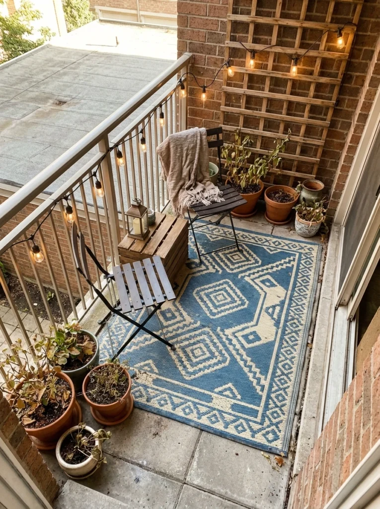 When exploring apartment patio ideas, flexibility is key. Wooden or metal folding chairs look incredibly charming and can easily be hung on a wall peg or tucked away behind a door when you need the patio for morning yoga or standing room for guests.