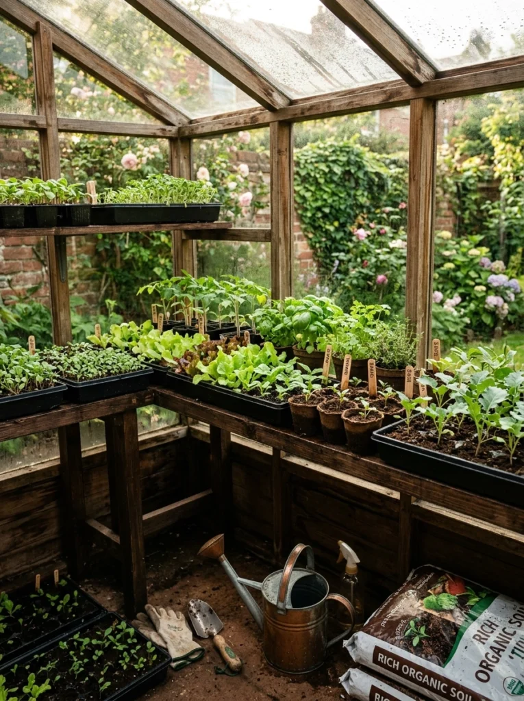 Greenhouse mini layouts extend seasons and protect crops. Add a seed starting shelf and a potting bench corner for early greens. Zero ventilation is a rookie mistake that will cook your seedlings.