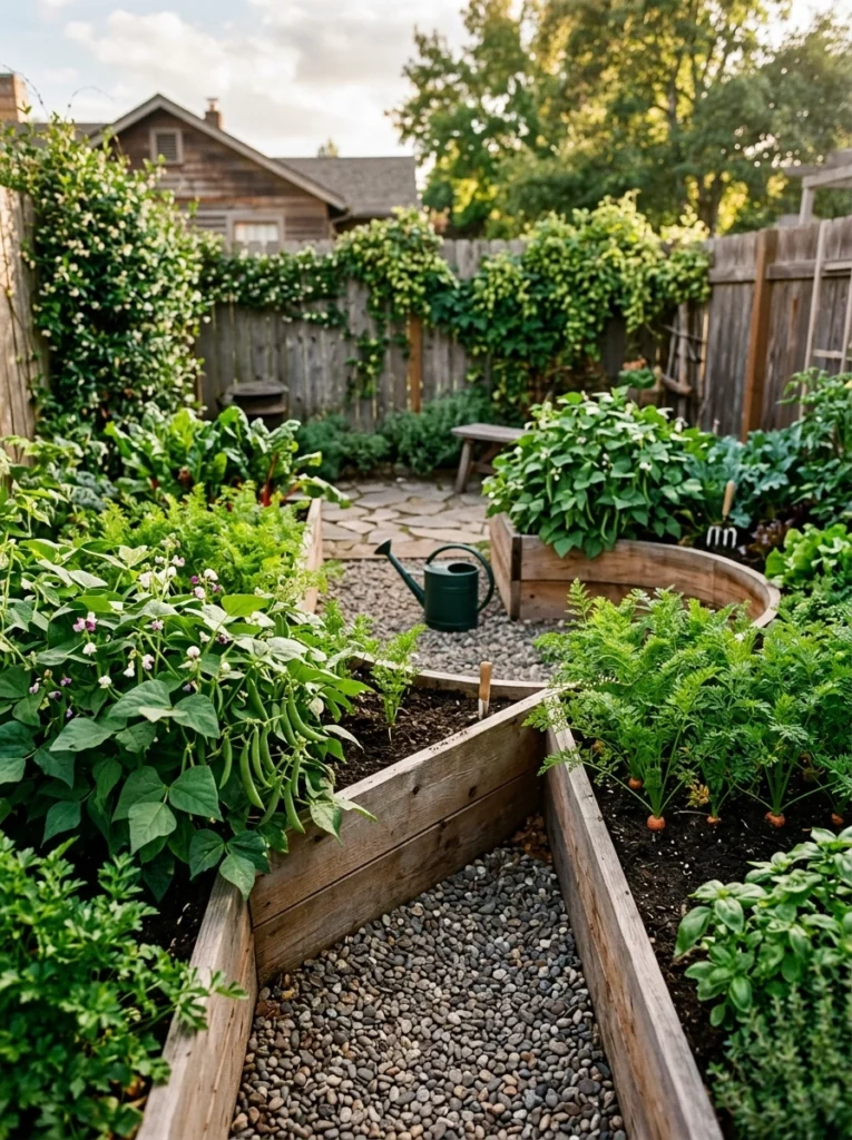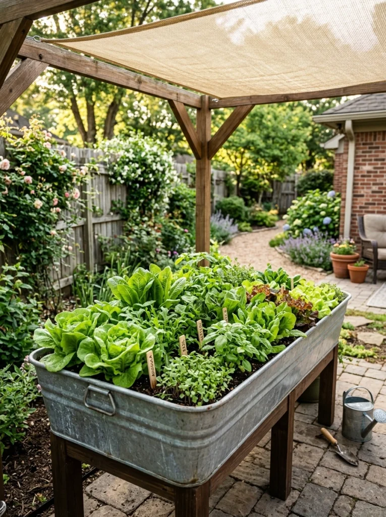 Galvanized steel troughs look incredible and save your back. Combine salad greens with shade cloth zones for crisp summer harvests. Ensure you drill drainage holes, or you’ll create a swamp!